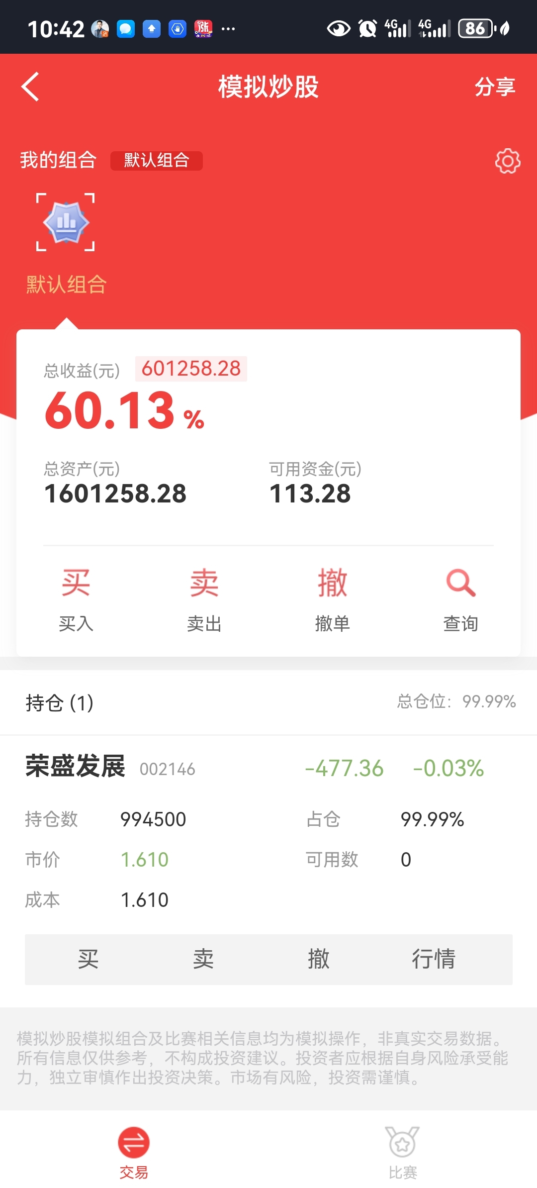 $荣盛发展(SZ002146)$ 模拟盘大佬来了