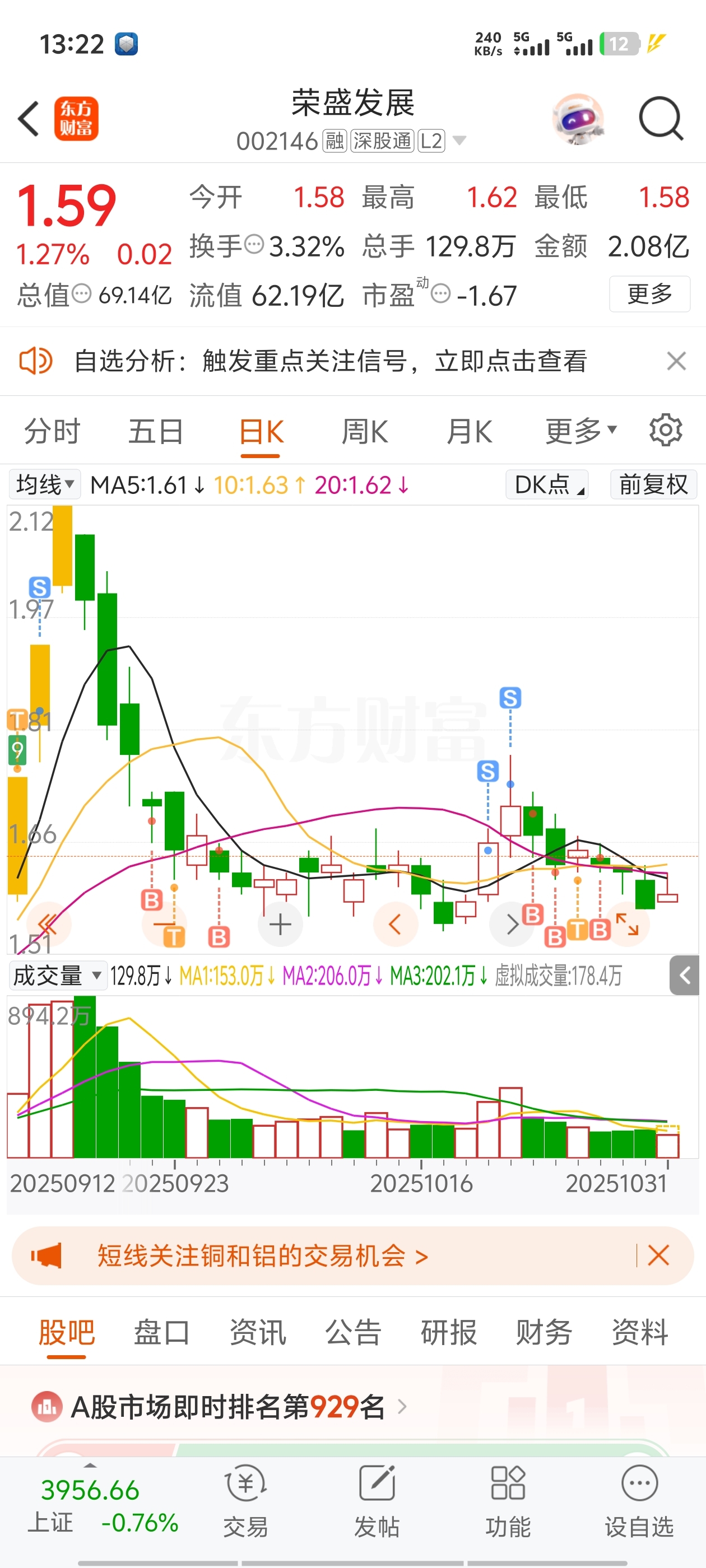 $荣盛发展(SZ002146)$ 不放量怎么行啊我去了