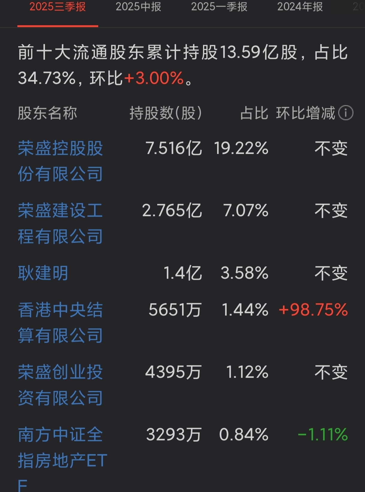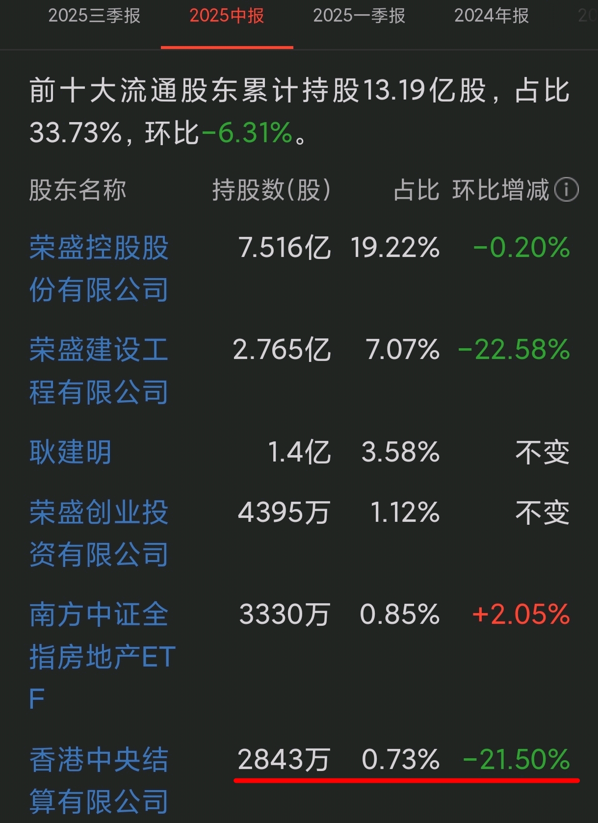 $荣盛发展(SZ002146)$ 香港中央结算股东三个涨停跑了也就是中报前。三季报1.6毛几又进来了,股东不长期持股就没高度,涨停封得好好的,它就开砸,(其实这种不进来是最好的,他就是老鼠shi).出去就不要再来,可惜它又进来了,