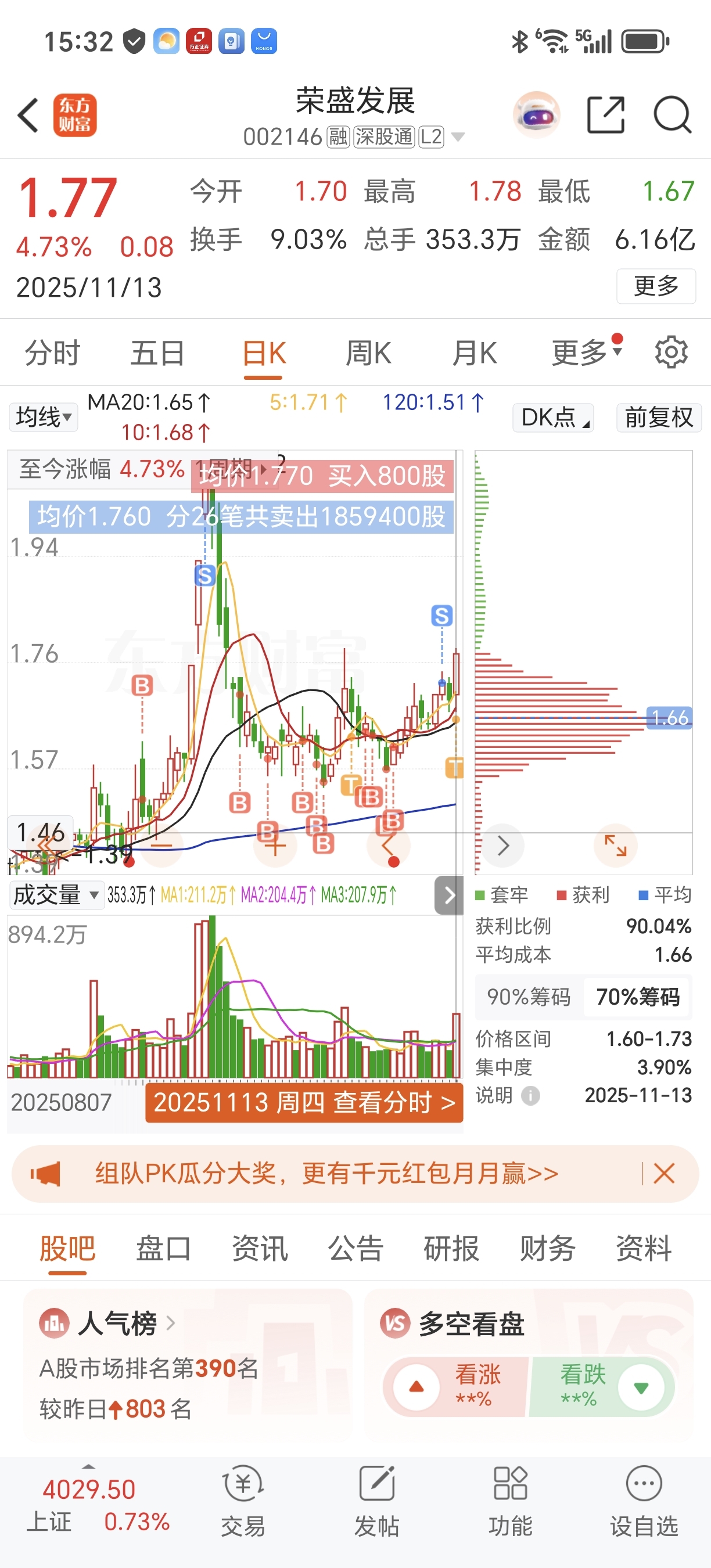 $荣盛发展(SZ002146)$ 暂时先撤了,留1000股,祝留下的发财!胆子有点儿小!
