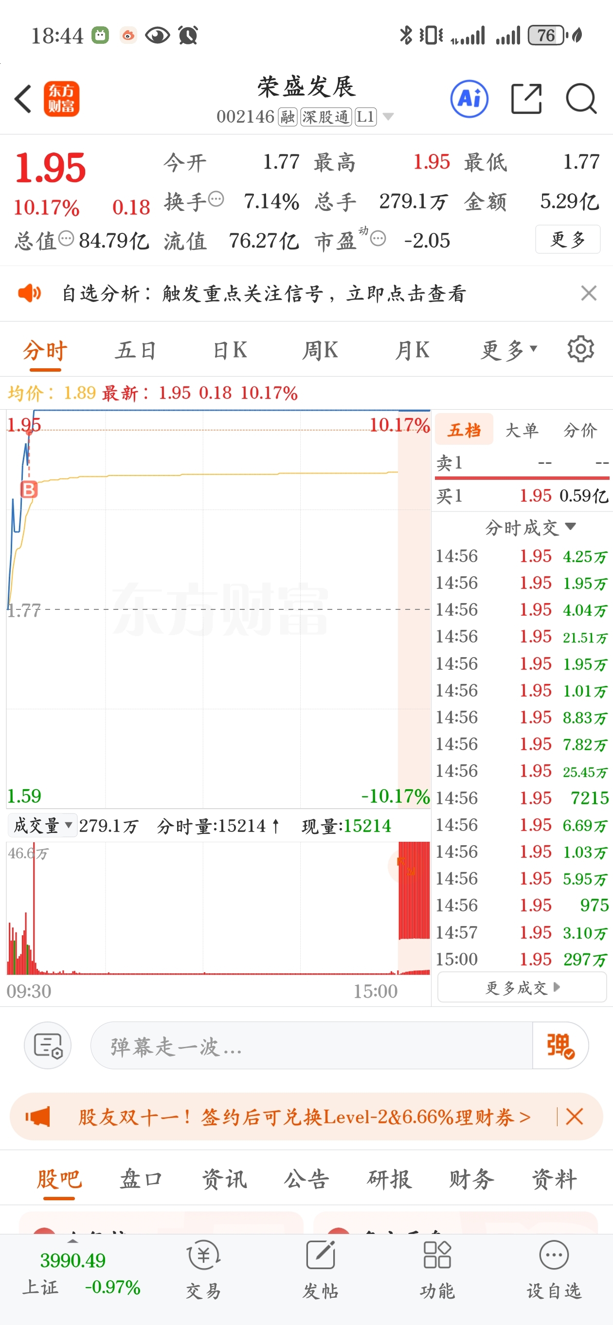 $荣盛发展(SZ002146)$ 星期一会不会被埋