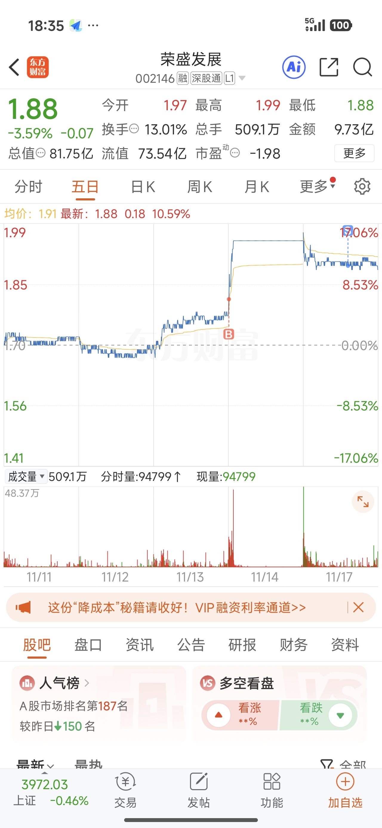 $荣盛发展(SZ002146)$ 不会告诉我真卖飞了吧,而且我是下午一点半才走的了