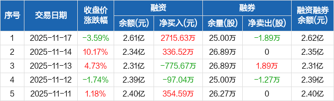 荣盛发展:融资净买入2715.63万元,融资余额2.61亿元(11-17)