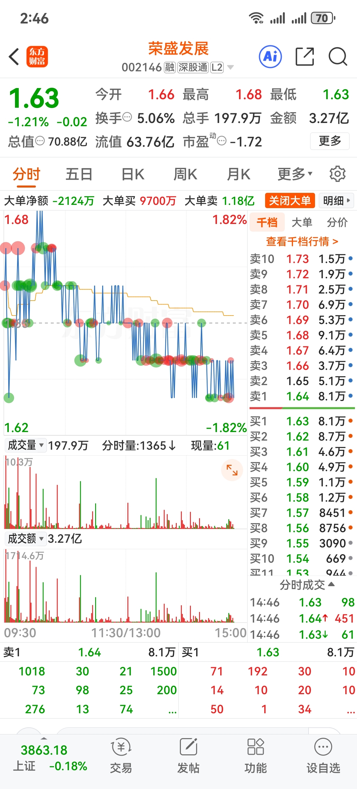 $荣盛发展(SZ002146)$ 看这买卖,严重控盘,左手倒右手呀