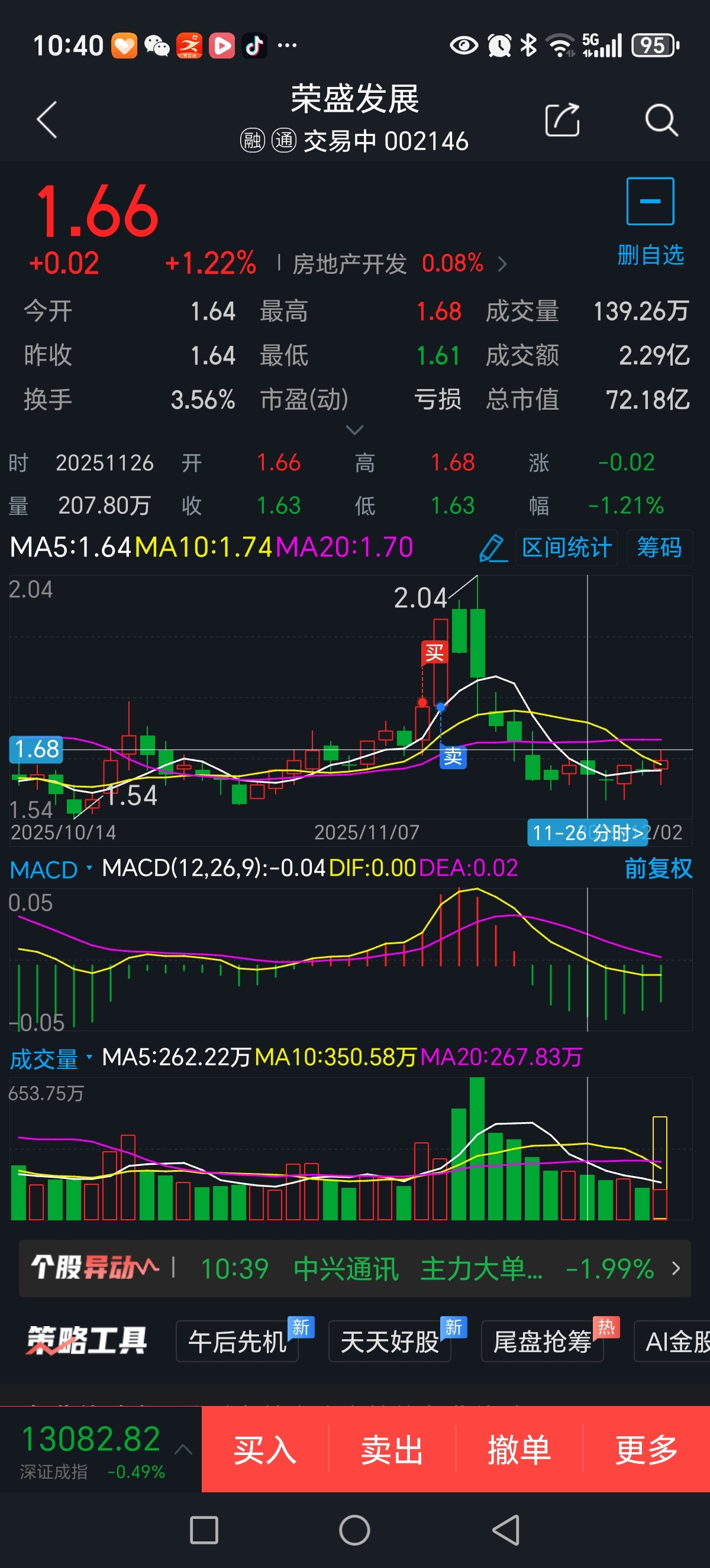 $荣盛发展(SZ002146)$ 破1.7就买入涨停板概念大