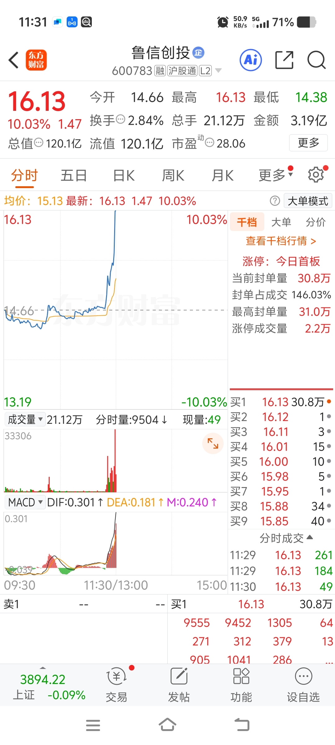 鲁信创投直线拉涨停了,你不表示一下吗?