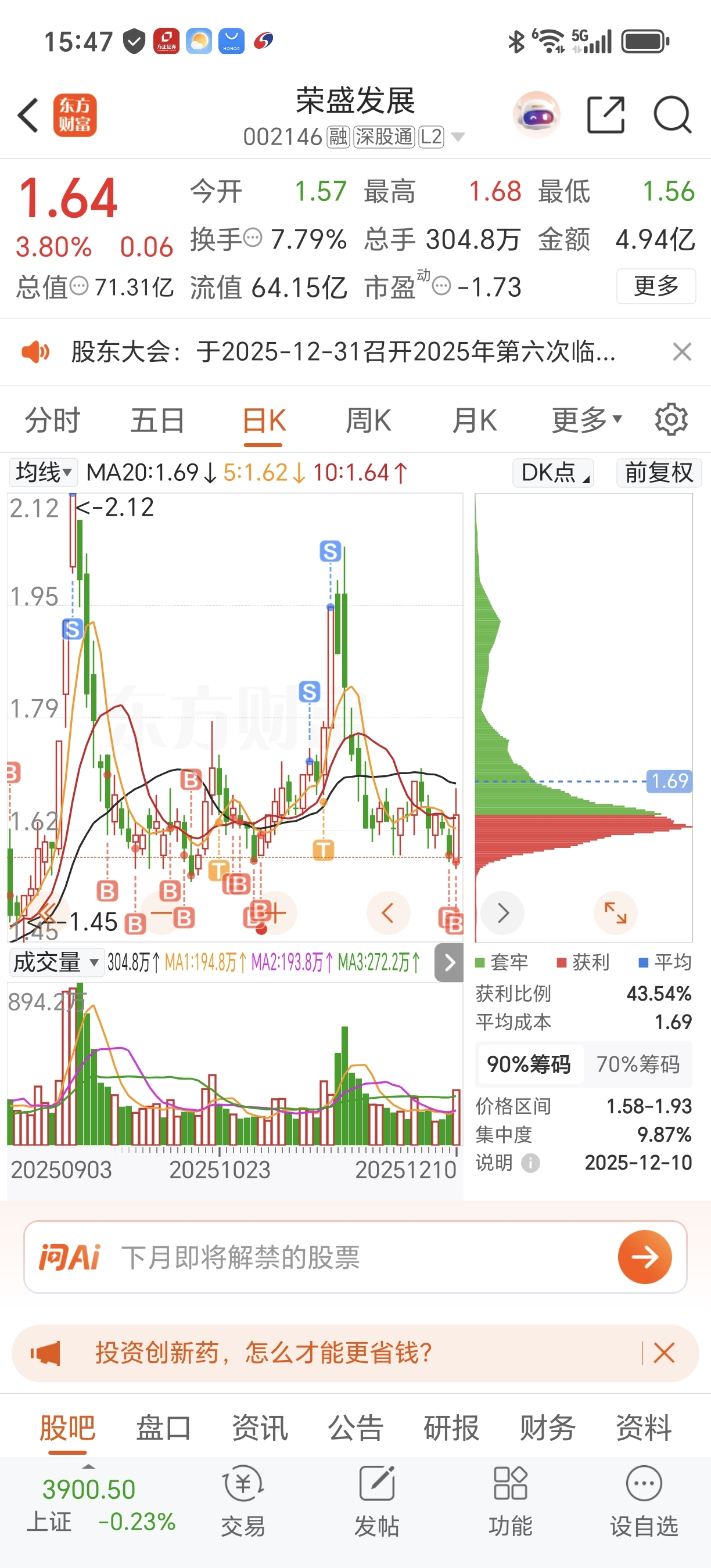 $荣盛发展(SZ002146)$ 俺又来了!干一个月,休息一个月!