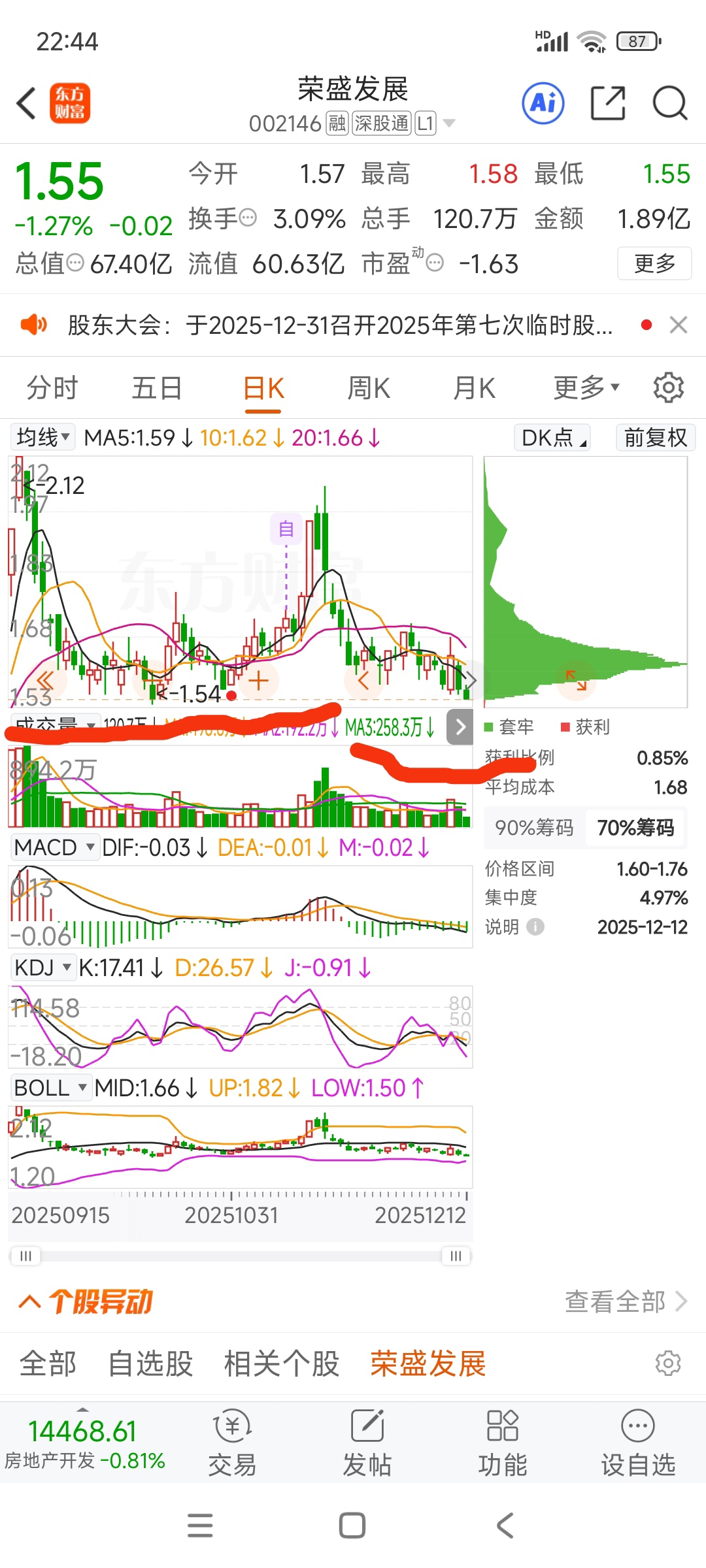 $荣盛发展(SZ002146)$ 这么多人说利好,利空。我从另一个角度跟你们讲。看图一块五毛三的时候启动到两块一毛一。上一回一块五毛四启动。好像到两块零几吧。今天是最低点,一块五毛五。想想