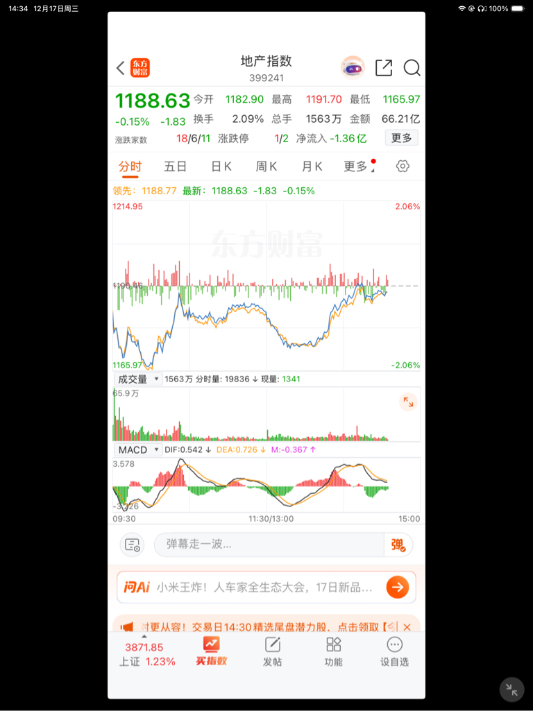 今天和地产指数同步,房地产开发板块今天是涨的,低于房地产板块
