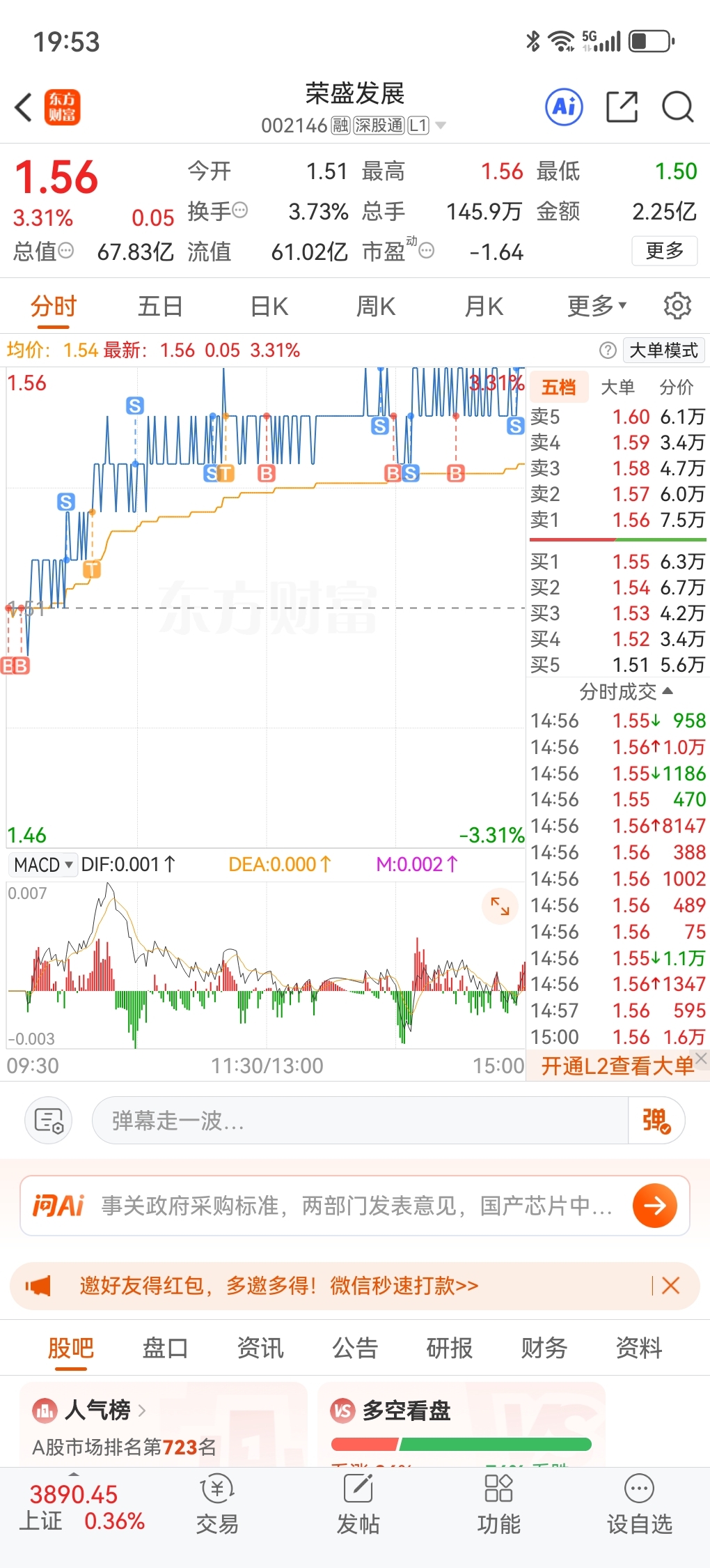 $荣盛发展(SZ002146)$ 155原地玩了一天