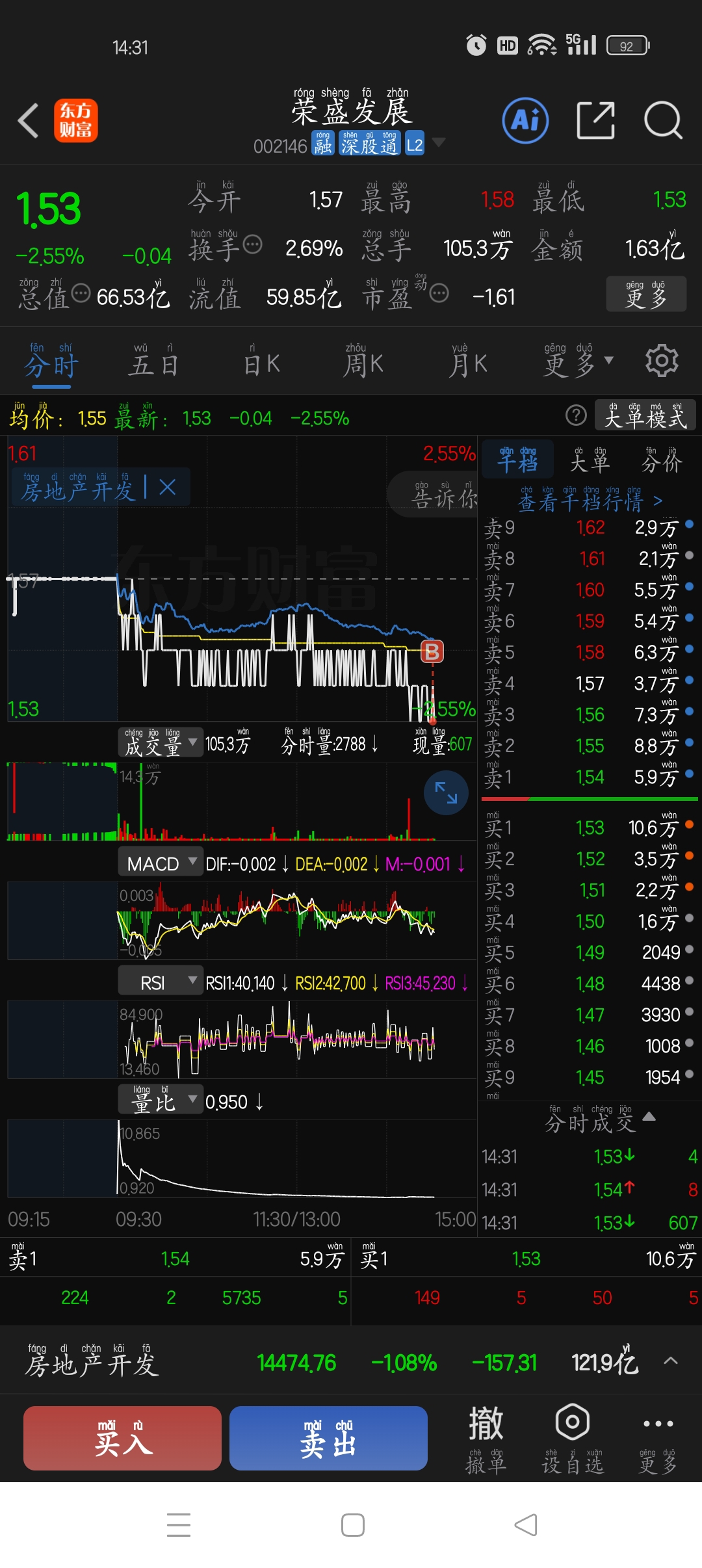 $荣盛发展(SZ002146)$ 隔一天做了5分T