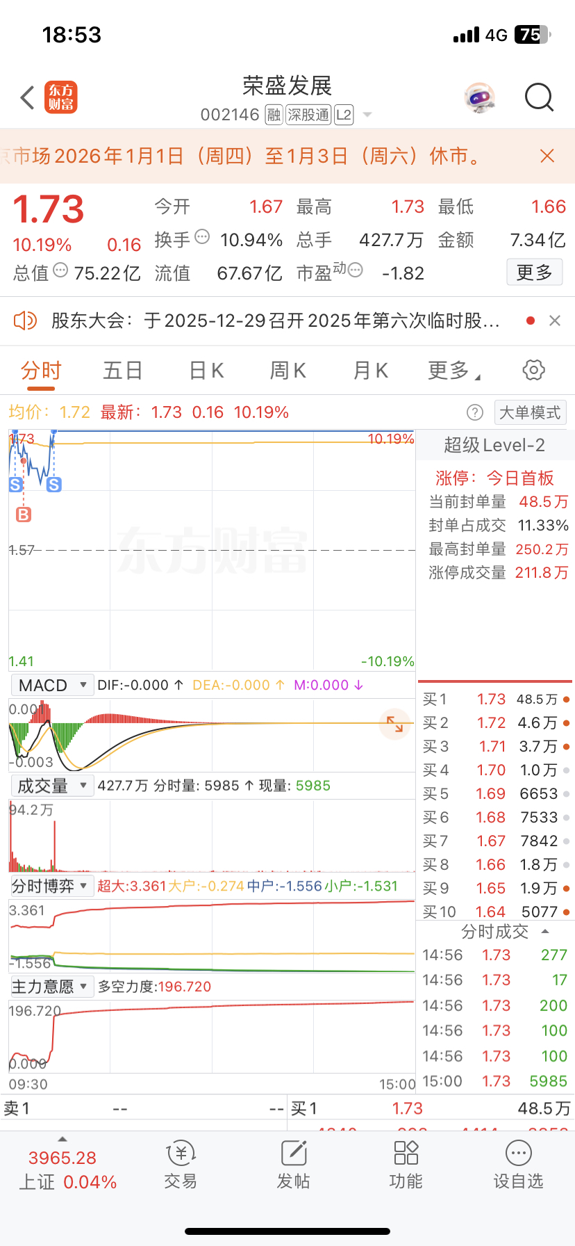 $荣盛发展(SZ002146)$ 唉,九点半一看要炸板,赶紧跑了,扭扭捏捏不回封,刚买回就拉胯以为买完了,又挂板上出底仓,忙完回头一看封死了,还以为首板会烂板,反复做t,唉卖飞了