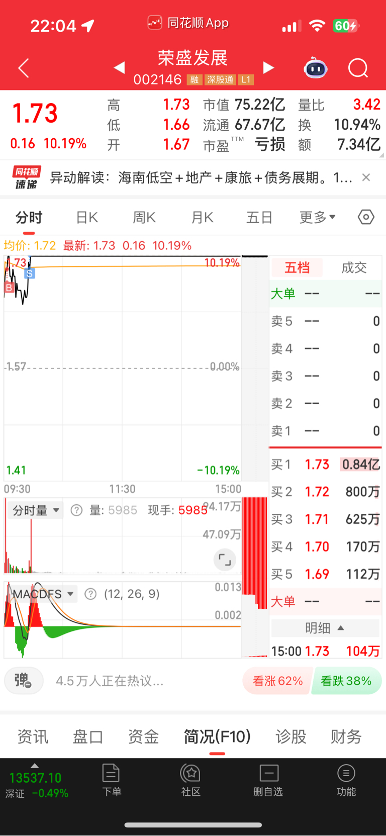$荣盛发展(SZ002146)$ 这么说卖飞了三分一?