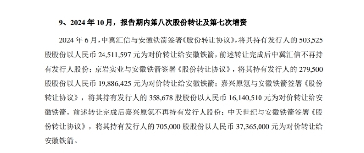 安徽铁箭不止收购中冀投资的股份还有其余好几家,明显这不是中冀单独的股份隐形转移而