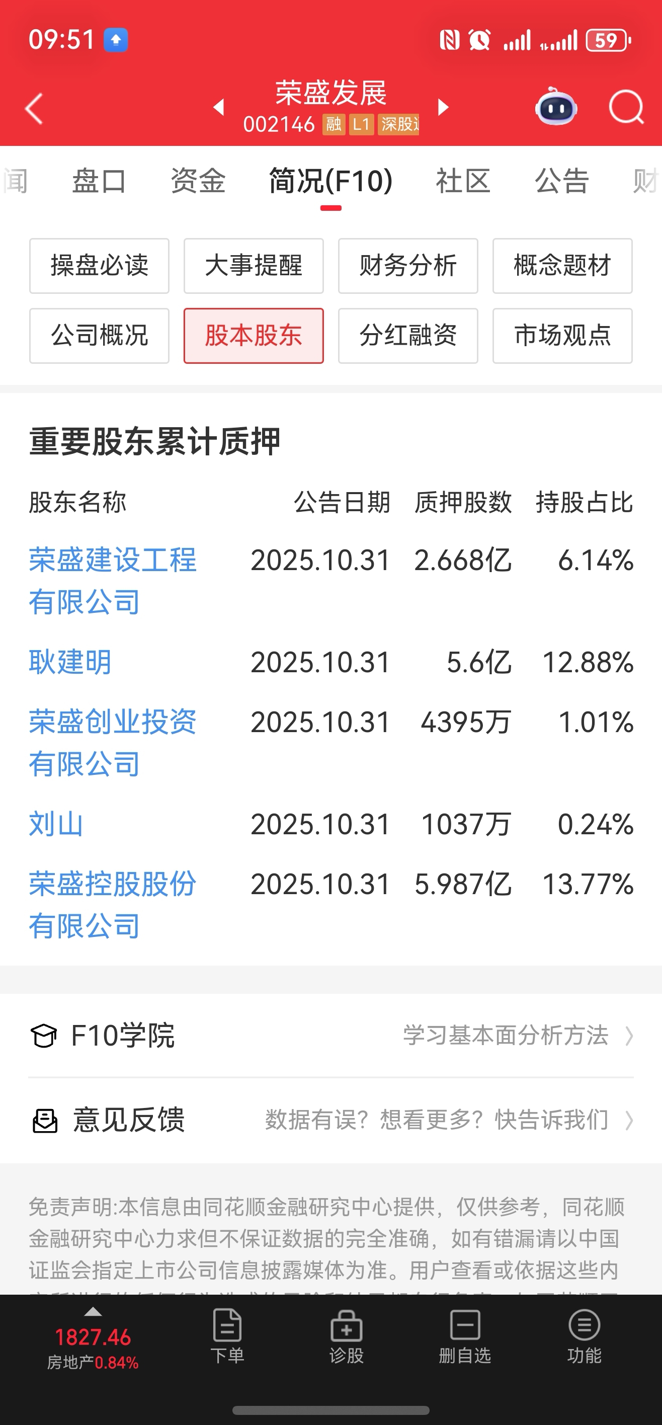 $荣盛发展(SZ002146)$ 大大股东质押了这么多,怕不怕呀