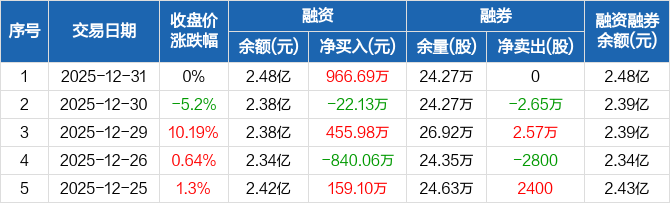 荣盛发展:融资净买入966.69万元,融资余额2.48亿元(12-31)
