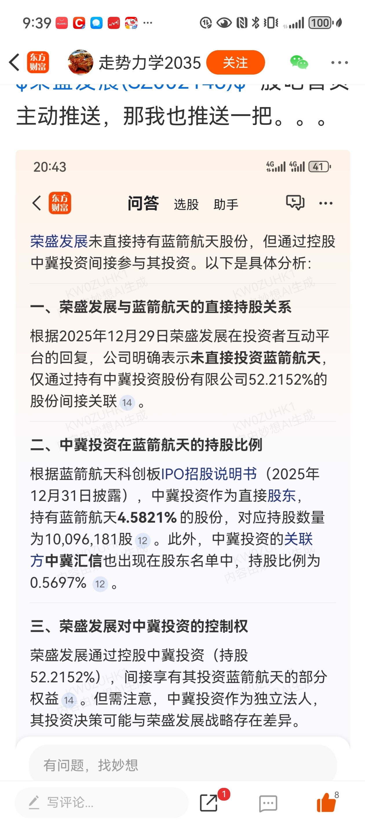 看图荣盛发展间接蓝箭500多万股。
