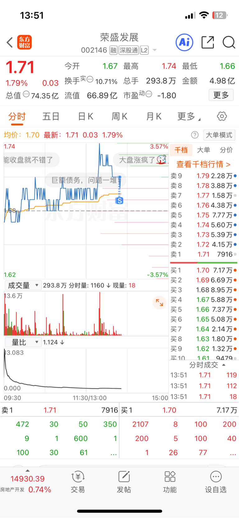 $荣盛发展(SZ002146)$ s出幻影了 等了4天 等不上了