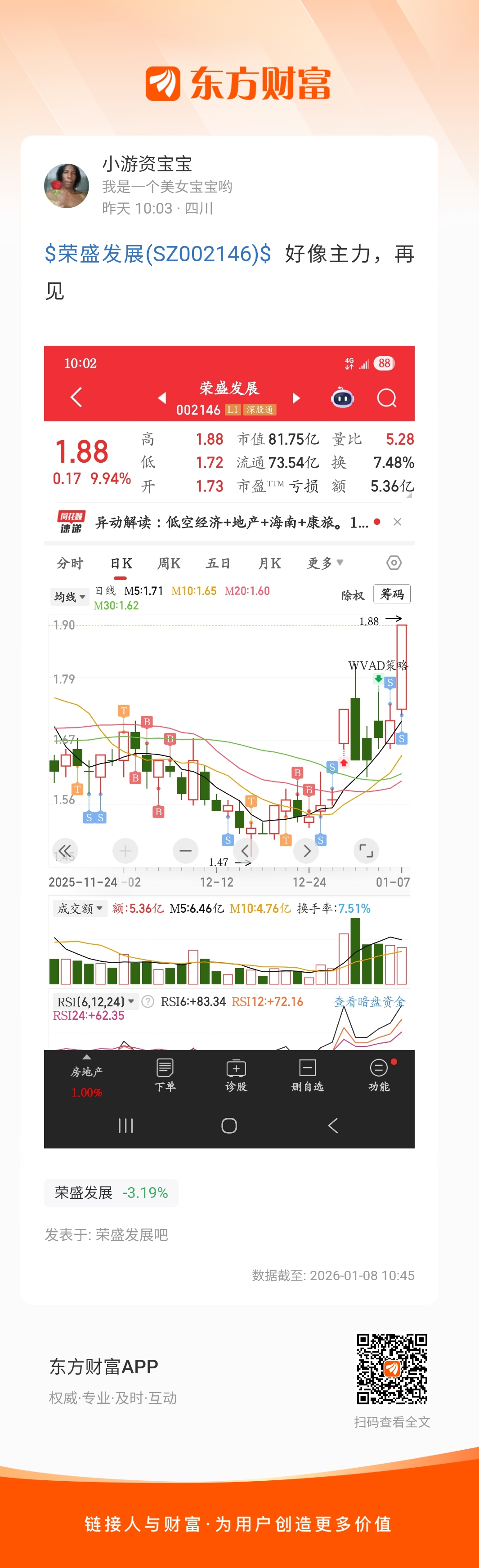 $荣盛发展(SZ002146)$  好像主力,再见
