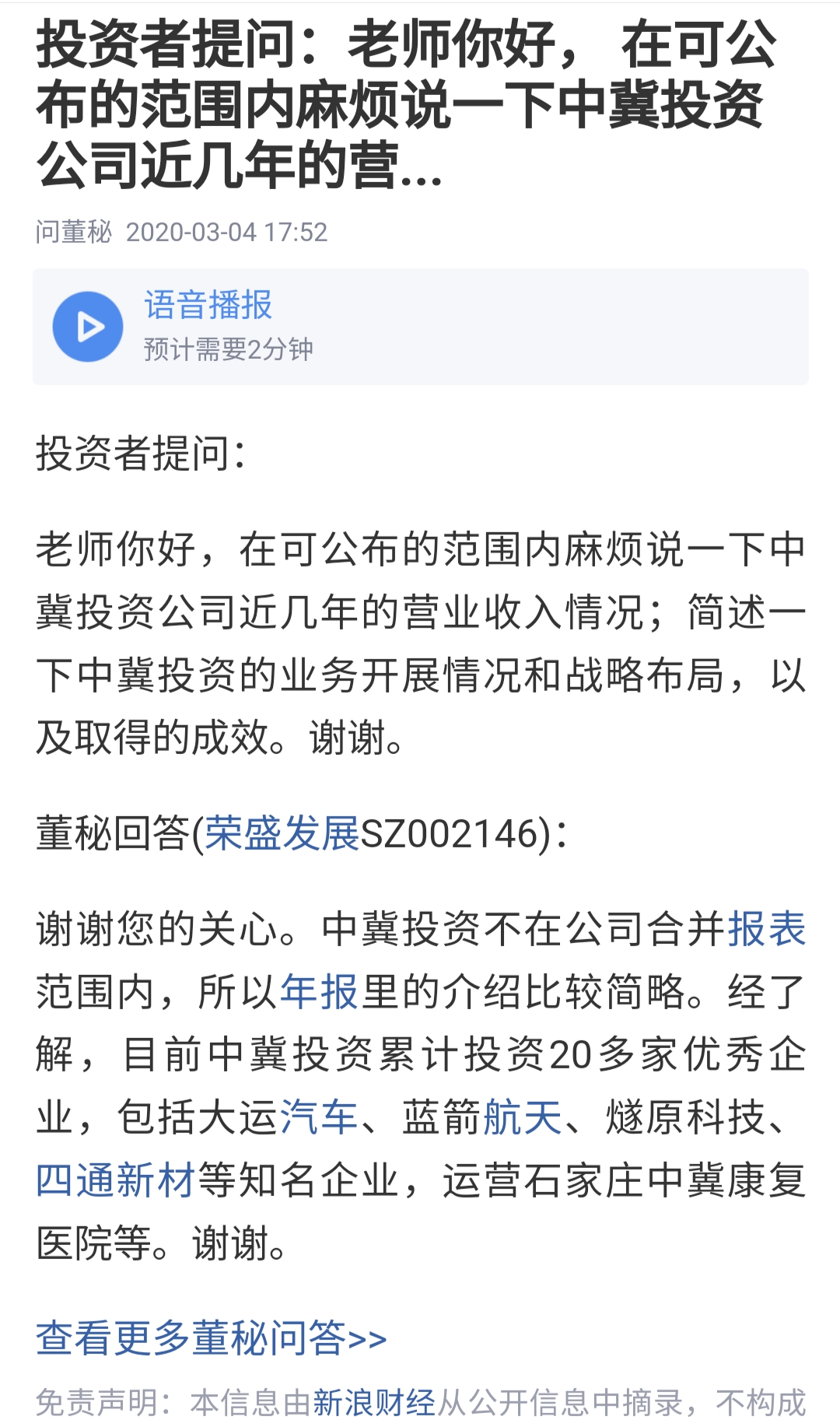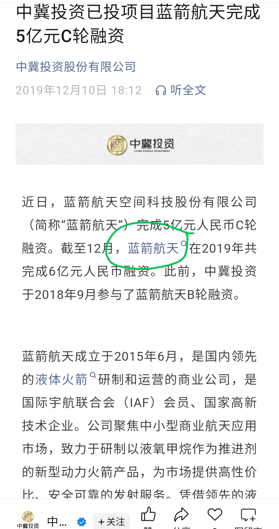 ,董秘实锤确认过持股蓝箭航天!