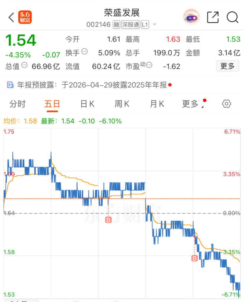 $荣盛发展(SZ002146)$ perfect!两天吃了7个多点!坐等主力解救!