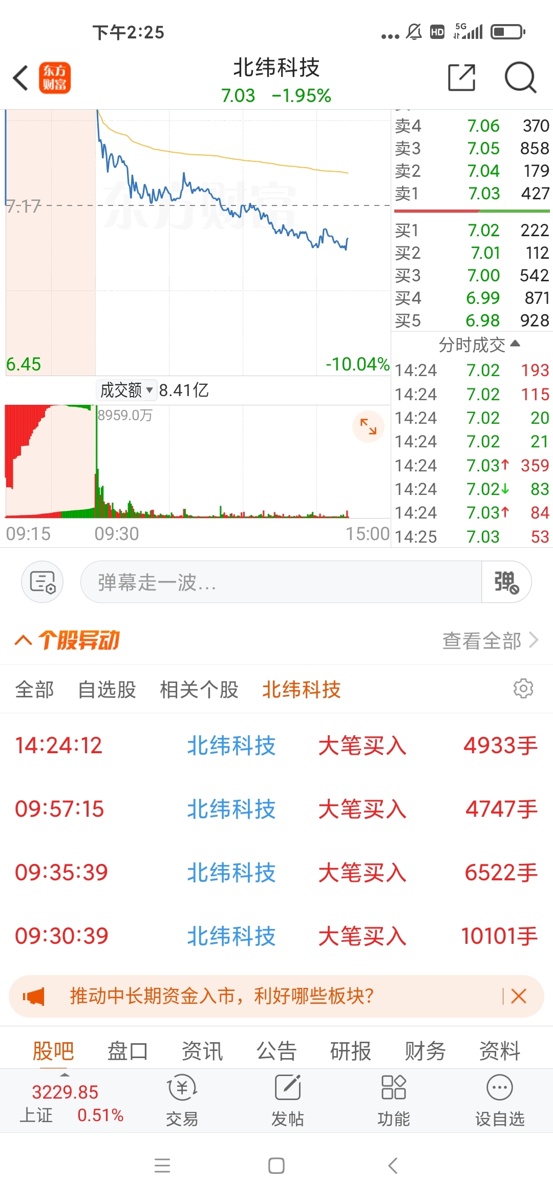 $北纬科技(SZ002148)$ 7.00有大单买入,博个反弹明天我就跑。