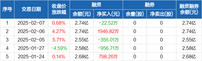 北纬科技:融资净偿还22.52万元,融资余额2.74亿元(02-07)