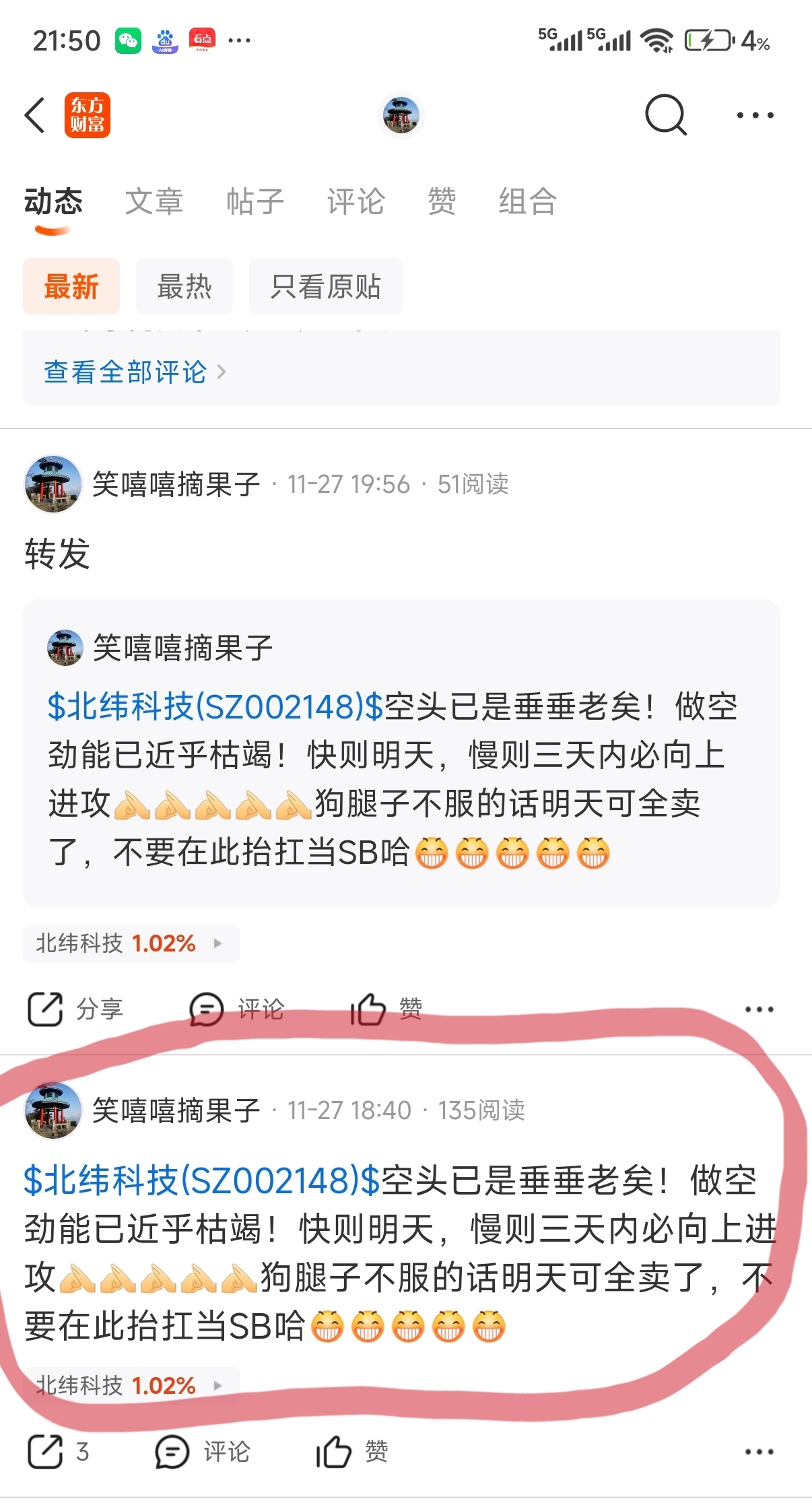 $北纬科技(SZ002148)$ 27日盘后判断三天内必上攻