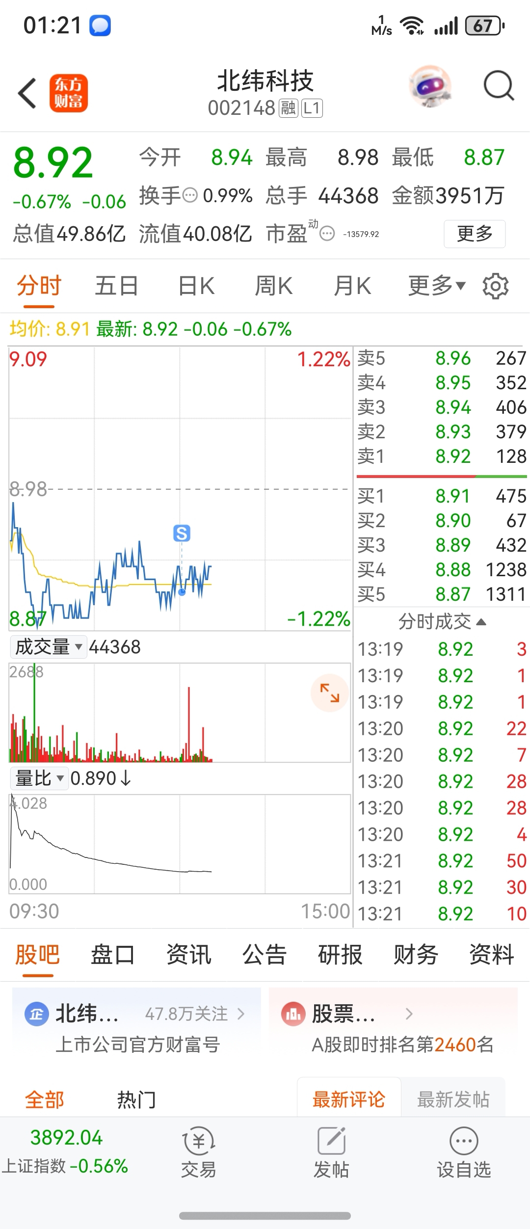 $北纬科技(SZ002148)$ 最后一万股清仓了,再也不见了