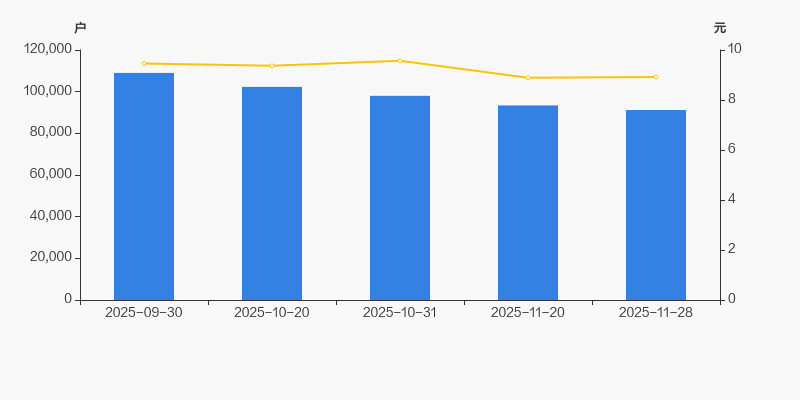 2025年9月30日至今,公司股东户数显著下降,区间跌幅为16.34%。2025年9月30日至2025年11月28日区间股价下降5.71%。