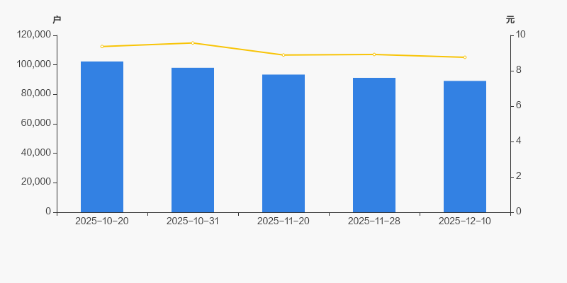 2025年10月20日至今,公司股东户数显著下降,区间跌幅为12.90%。2025年10月20日至2025年12月10日区间股价下降6.51%。