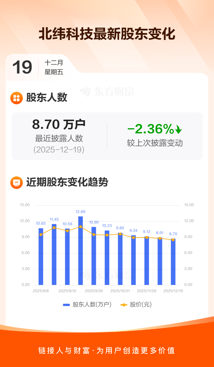 北纬科技:截至12月19日最新股东户数8.70万户,较上期减少2.36%