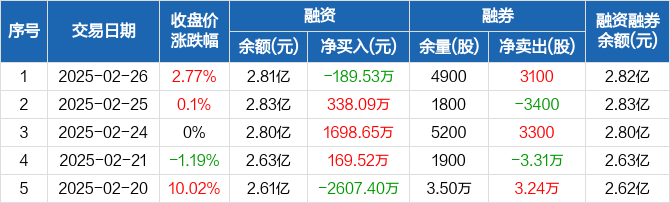 西部材料:融资净偿还189.53万元,融资余额2.81亿元(02-26)