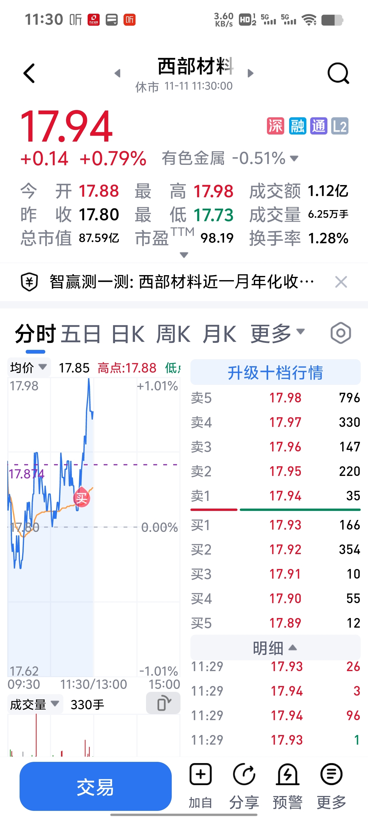$西部材料(SZ002149)$ 买了点,看看下午怎么样吧。板块都涨了,就这个东西落后板块很多了,希望知耻而后勇吧。