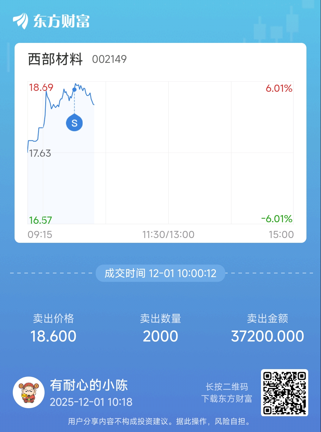 温馨提示: 1.根据《证券法》规定,禁止编造、传播虚假信息或者误导性信息,扰乱证券市场;2.用户在本社区发表的所有资料、言论等仅代表个人观点,与本网站立场无关,不对您构成任何投资建议。用户应基于自己的独立判断,自行决定证券投资并承担相应风险。《东方财富社区管理规定》