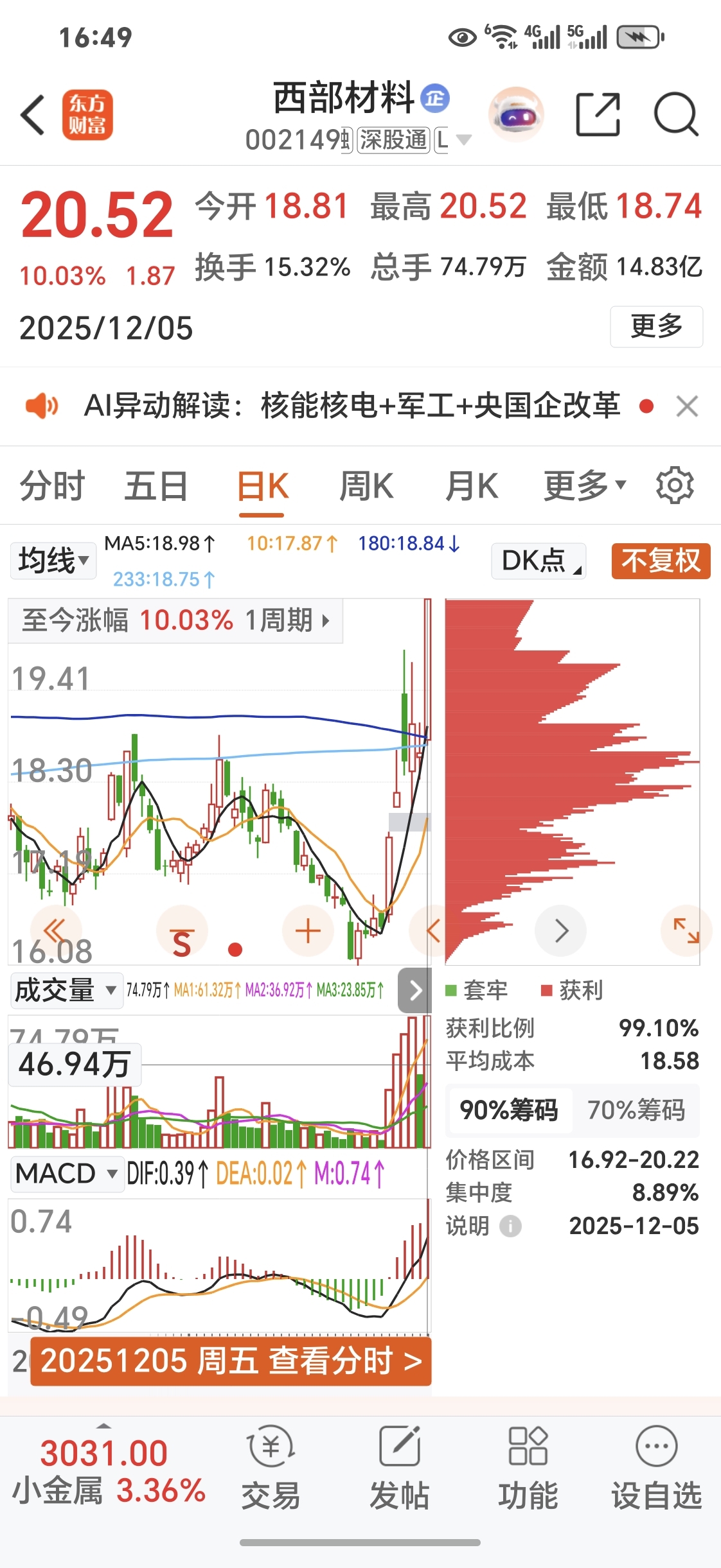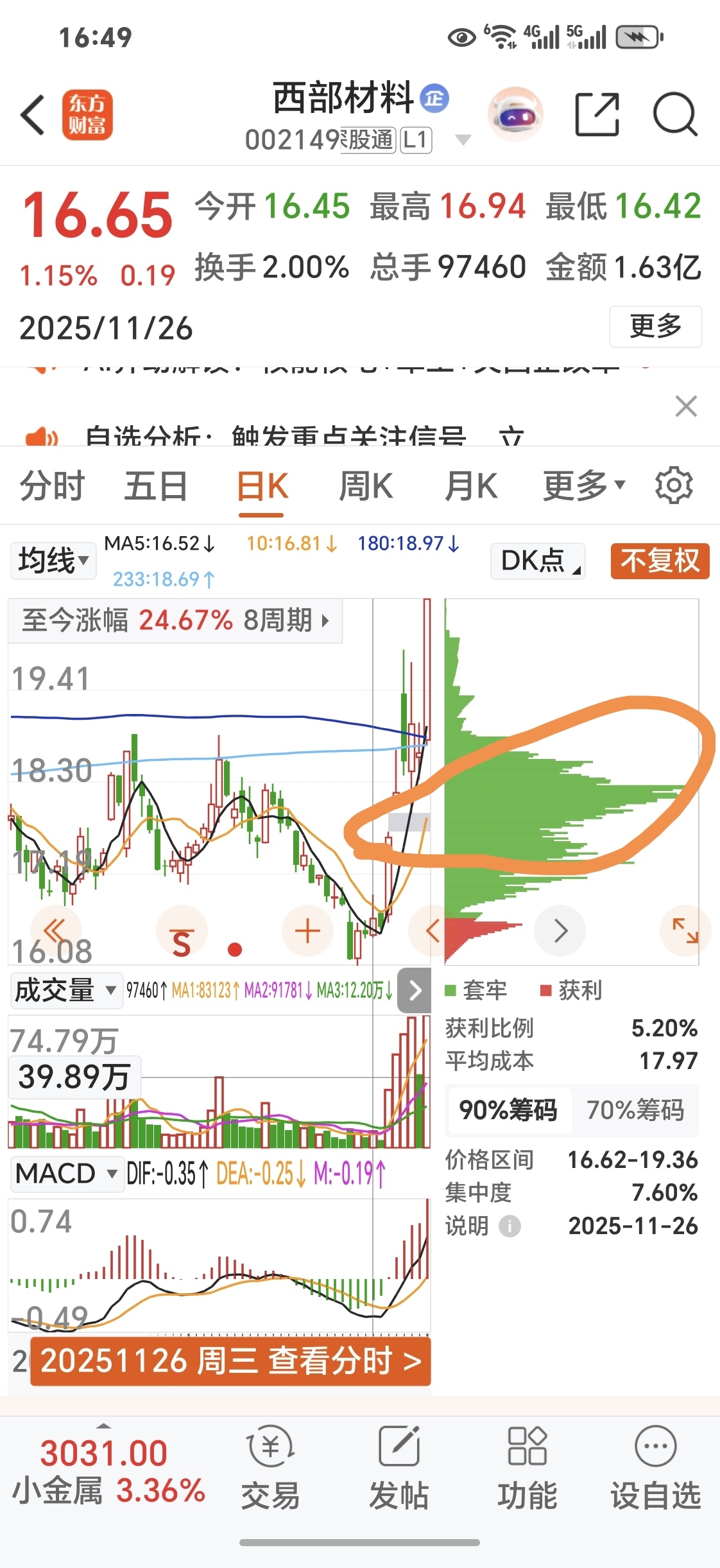 底部密集筹码都在,说明这部分筹码没有获利了解,继续格局看高一线