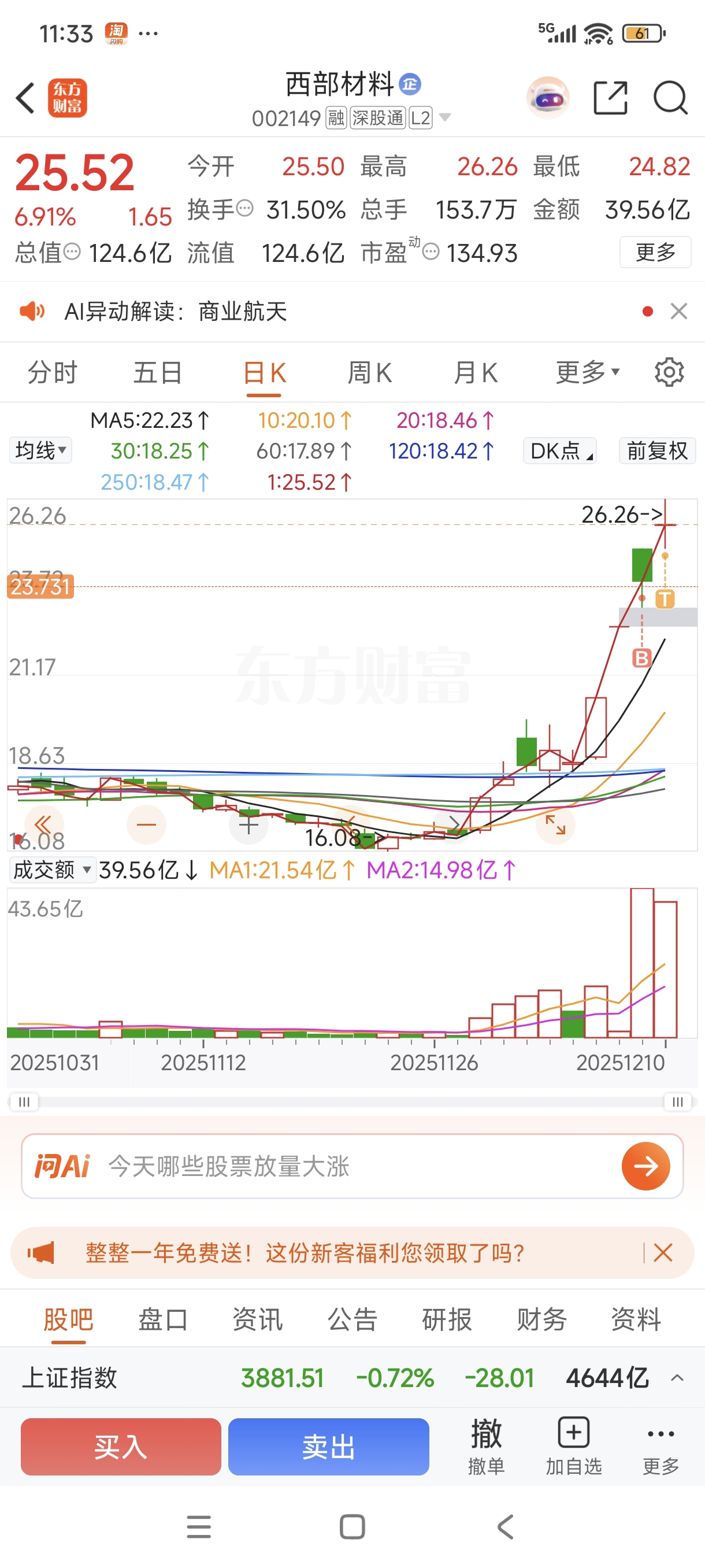 $西部材料(SZ002149)$ 明天很有可能高开封涨停,像昨天爆量炸板今天应该低开低走才对,而不是高开封涨停把昨天的套牢盘全部放量释放,你面资金那么好心吗?看明天低开我就撤损失一点利润无所吊谓