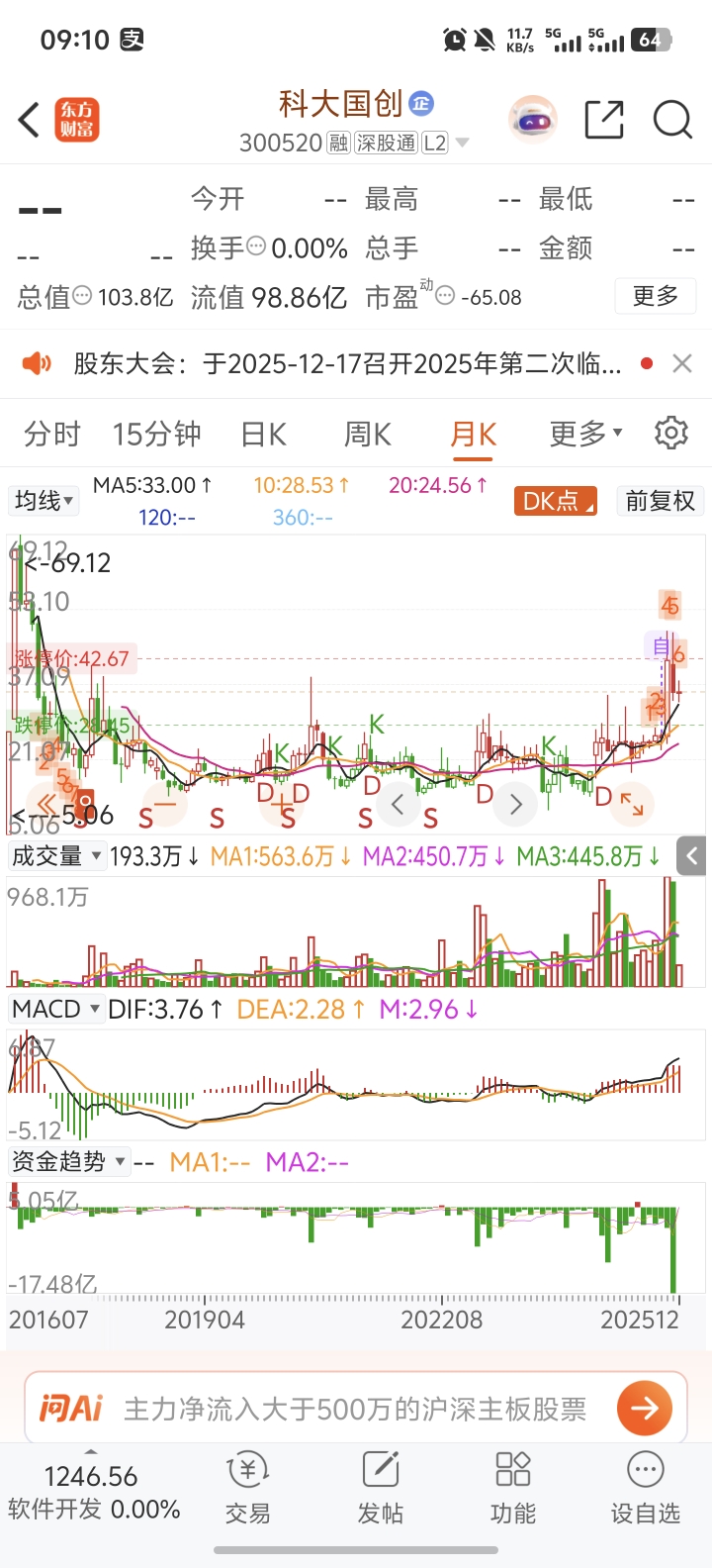 $西部材料(SZ002149)$ $科大国创(SZ300520)$ 集合竞价卖出西部材料,买入科大国创,西部材料的集合竞价走势太差了,科大国创集合竞价走势还可以,月线图也可以,正好。国仪量子准备ipo,死拿半年可以