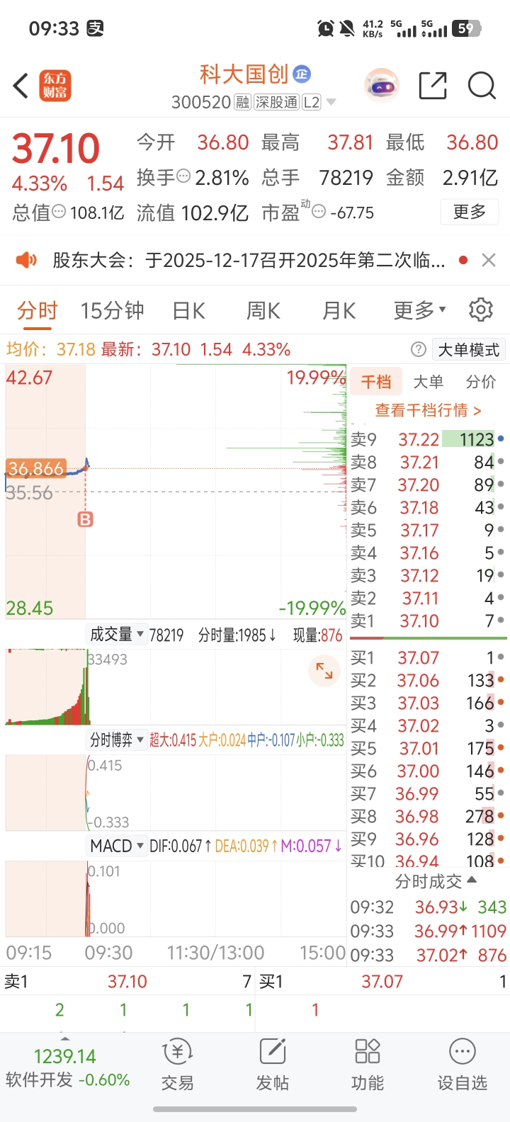 集合竞价卖出西部材料,买入科大国创,西部材料的集合竞价走势太差了,科大国创集合竞