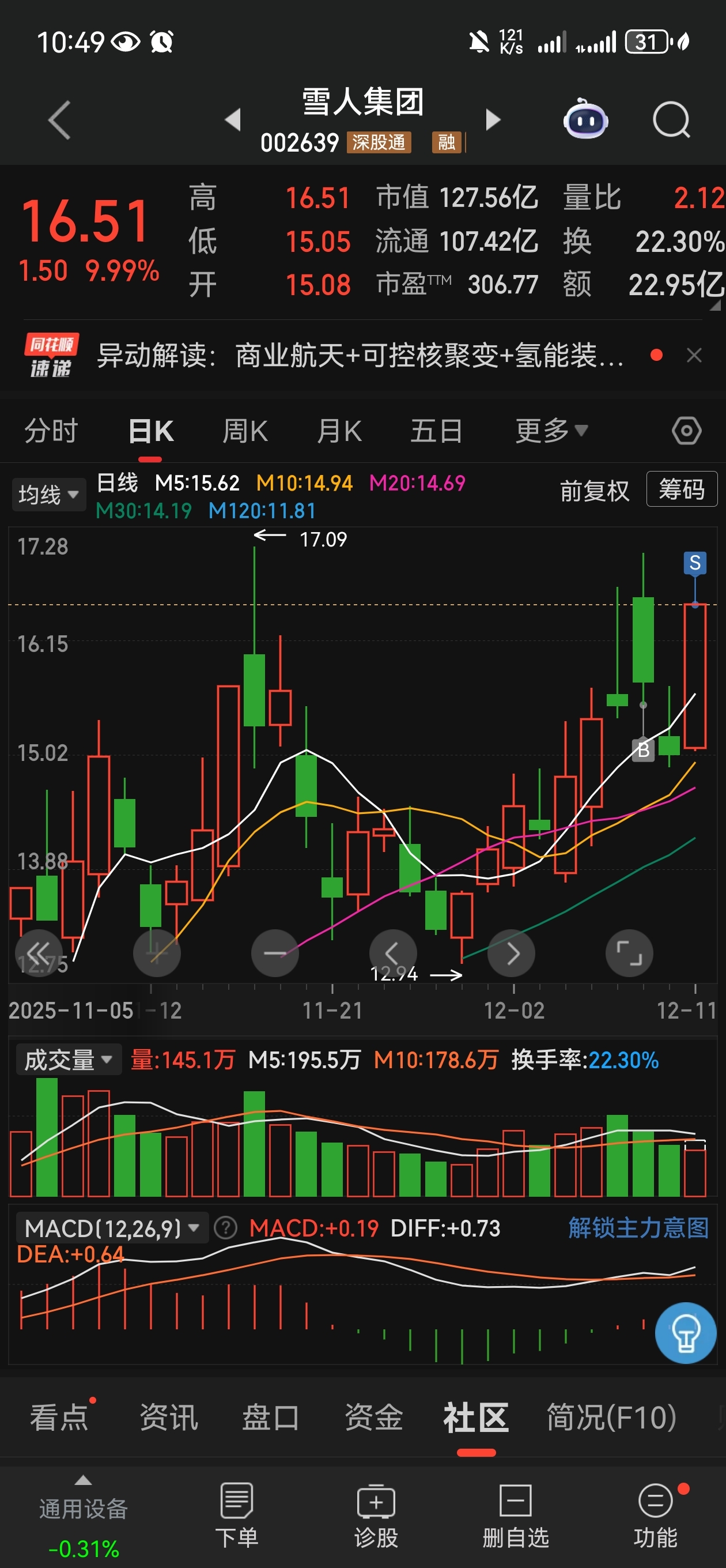 雪人板了也走掉了。下午找机会研究好买点,但是明天会不会黑五?$西部材料(SZ002149)$ $C摩尔-U(SH688795)$ $博纳影业(SZ001330)$ #炒股日记# #强势机会# #实盘记录#