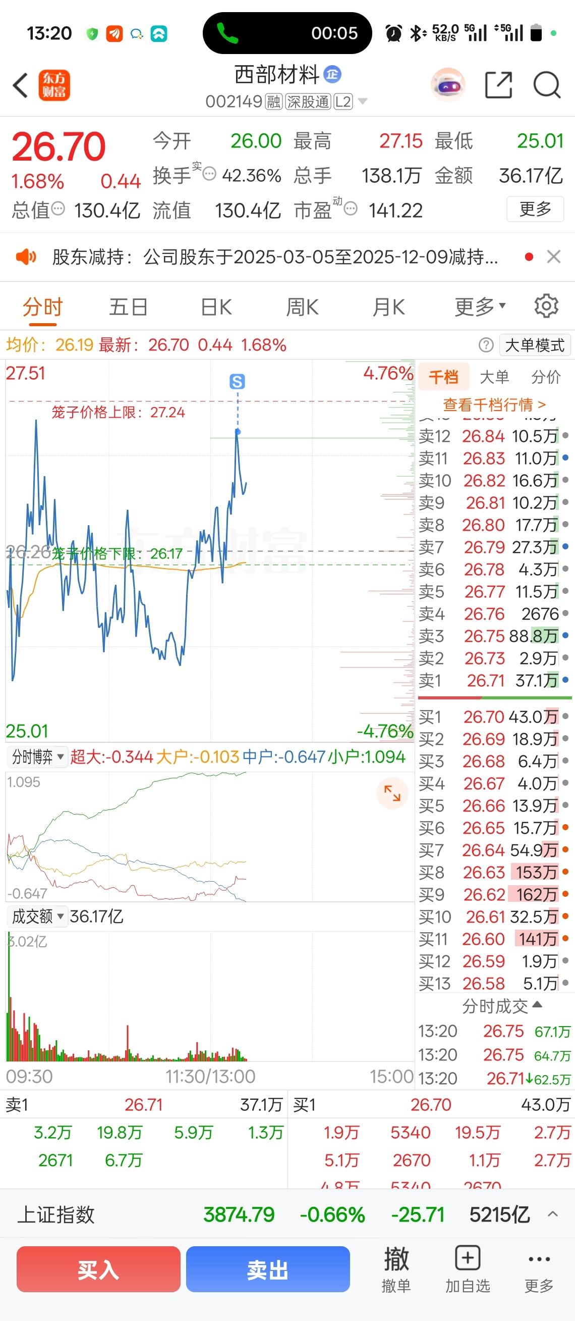 $西部材料(SZ002149)$ 昨天打板进的成本太高了,今天小赚点撤退了,留下的股东们发财