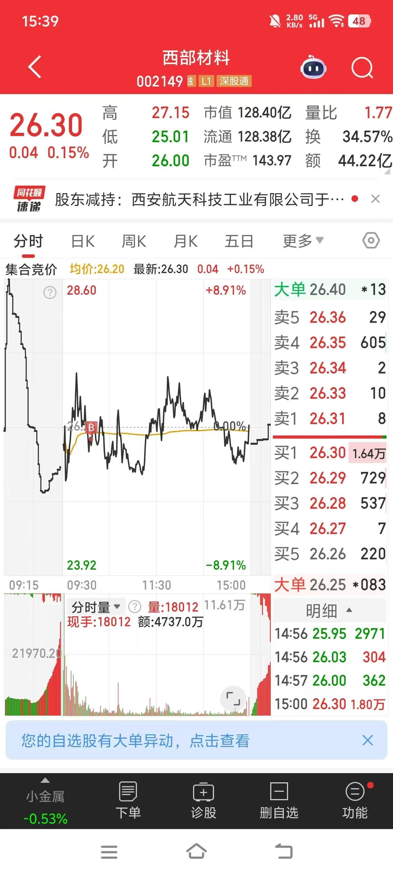 $西部材料(SZ002149)$ 量化太多了,后面就是一个星期只出手一两次就对了,没法做!
