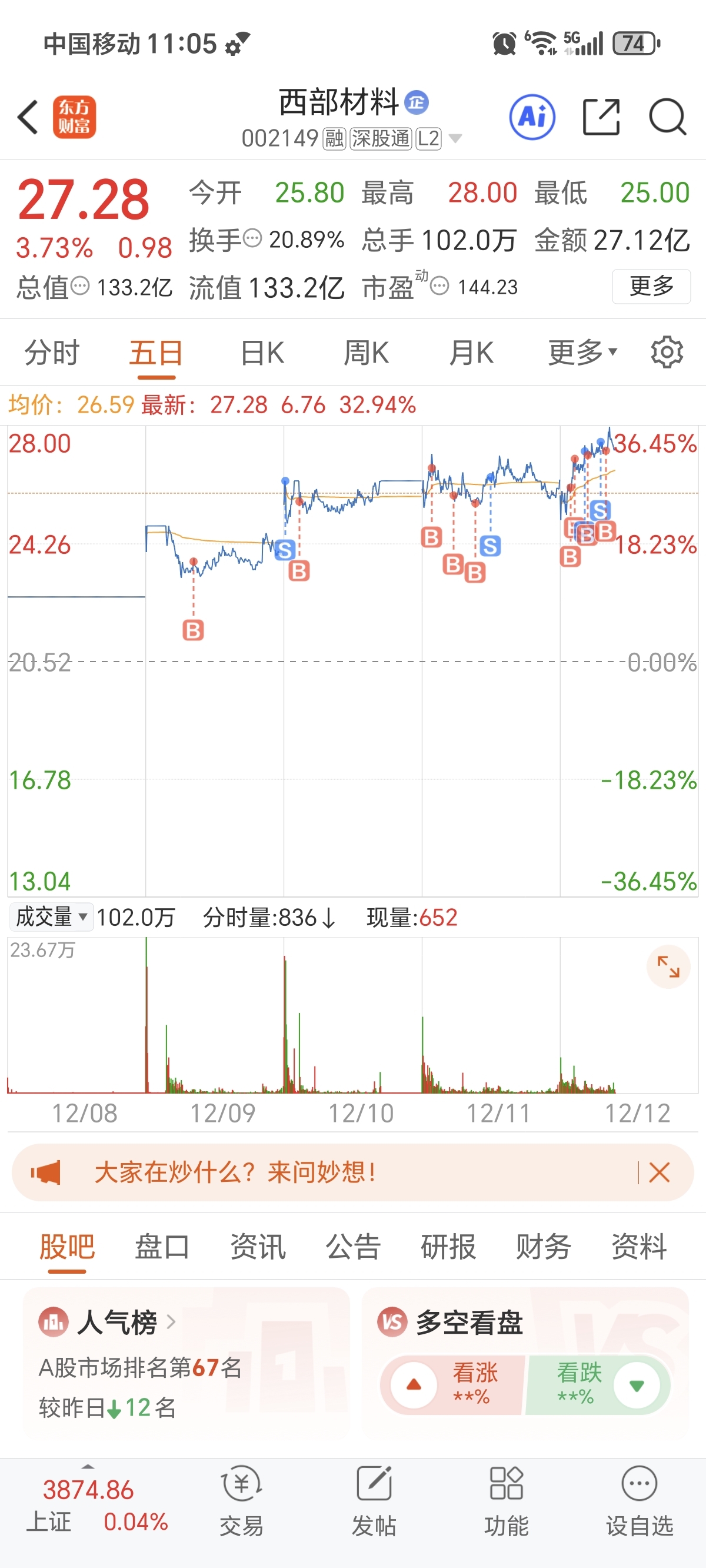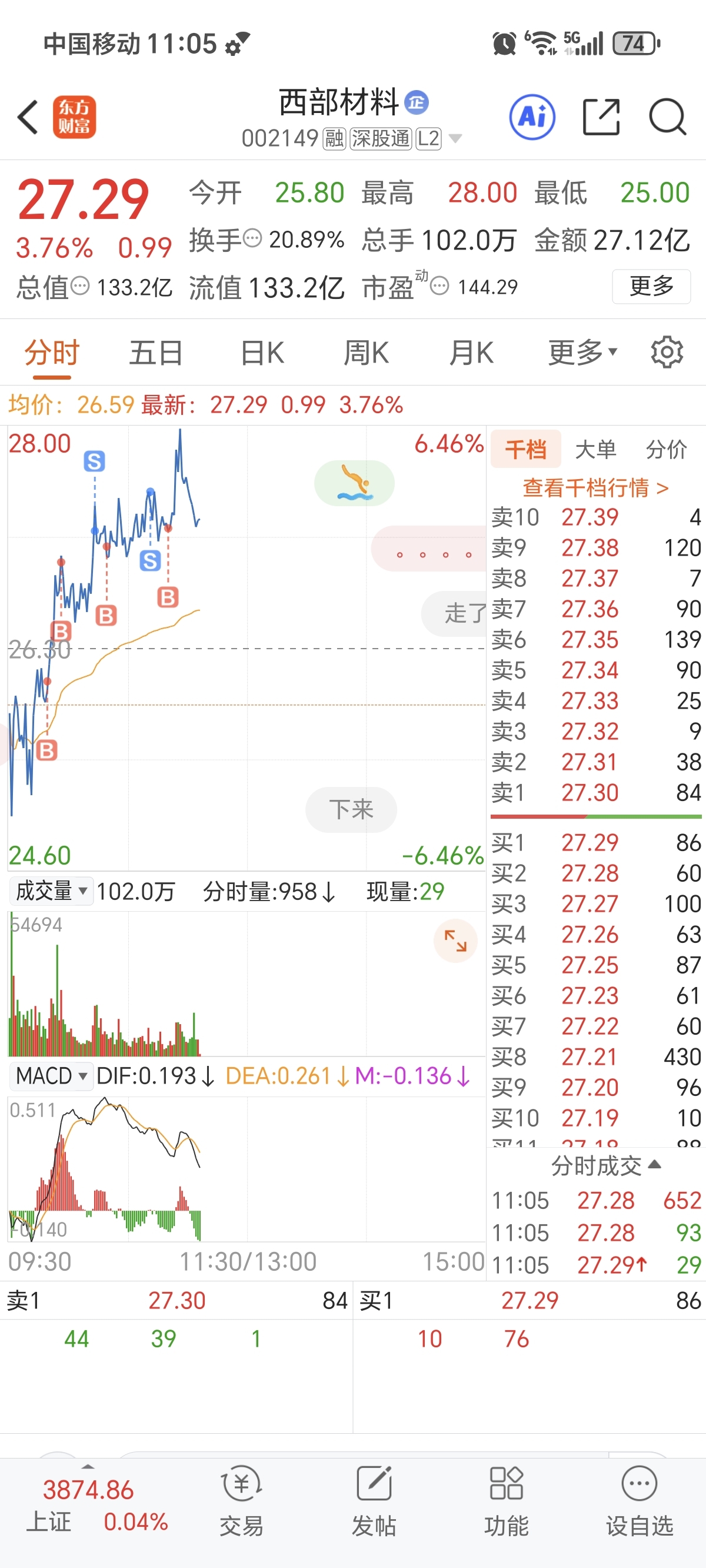 $西部材料(SZ002149)$ 慌个毛线 不到40不卖