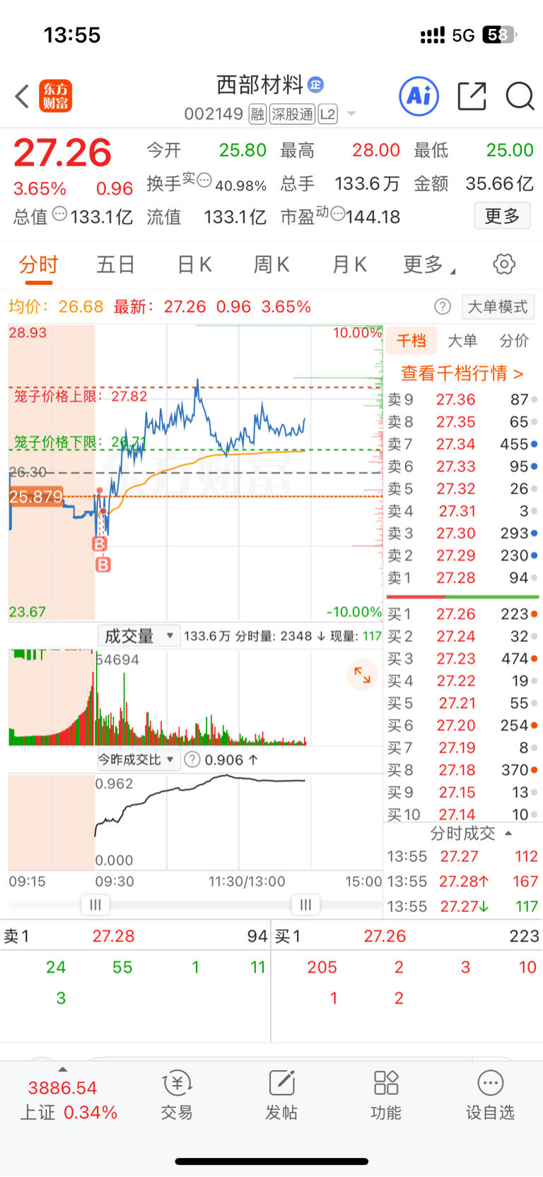 $西部材料(SZ002149)$ 三板斧结构,隔日套利。理论上下周一盈亏都要跑路,现在市场变好了,情绪一阶段,或许能给多点。