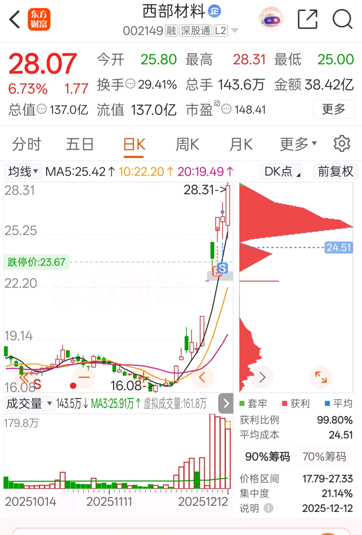 $西部材料(SZ002149)$ 涨停后面应该会连板,还好有8成仓位在里面,只卖了2成仓,冲啊