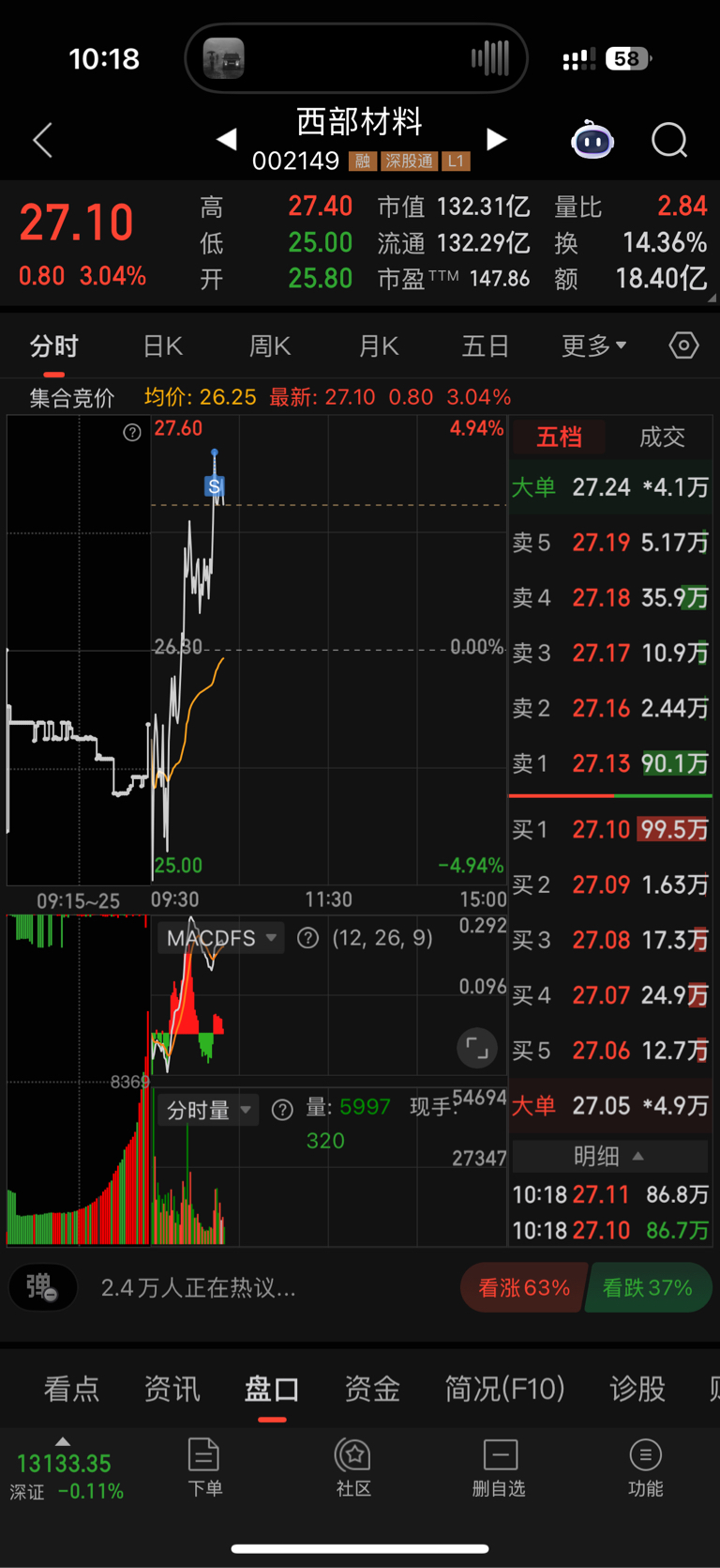 $西部材料(SZ002149)$ 我说怎么让我高点跑了呢 搞半天甩我呢啊