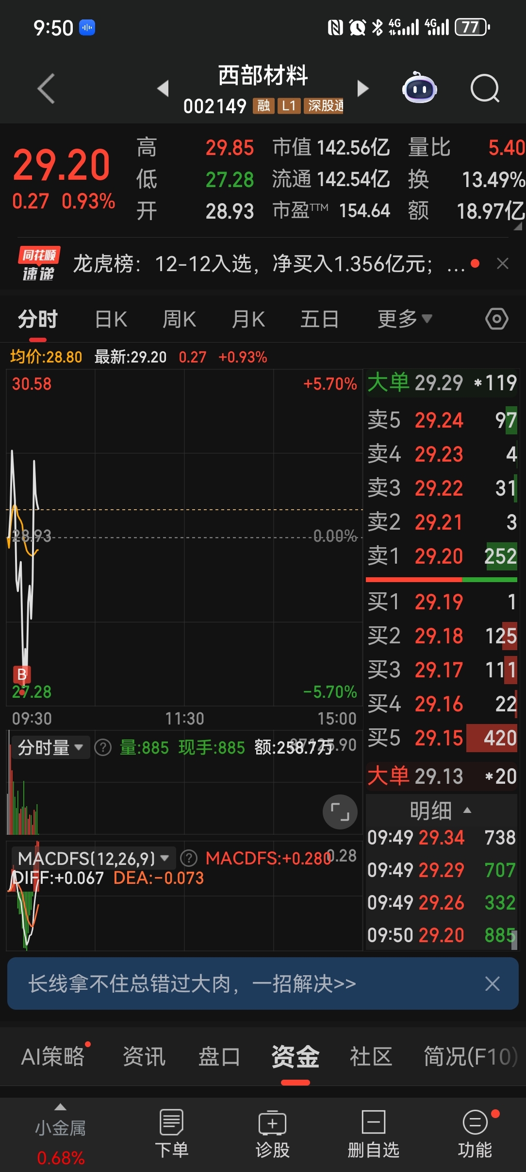 $西部材料(SZ002149)$ 不用急着拉升哈,回踩5日线