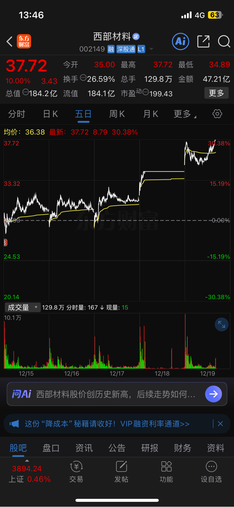 $西部材料(SZ002149)$ 主力牛B、差点把我抖下去了