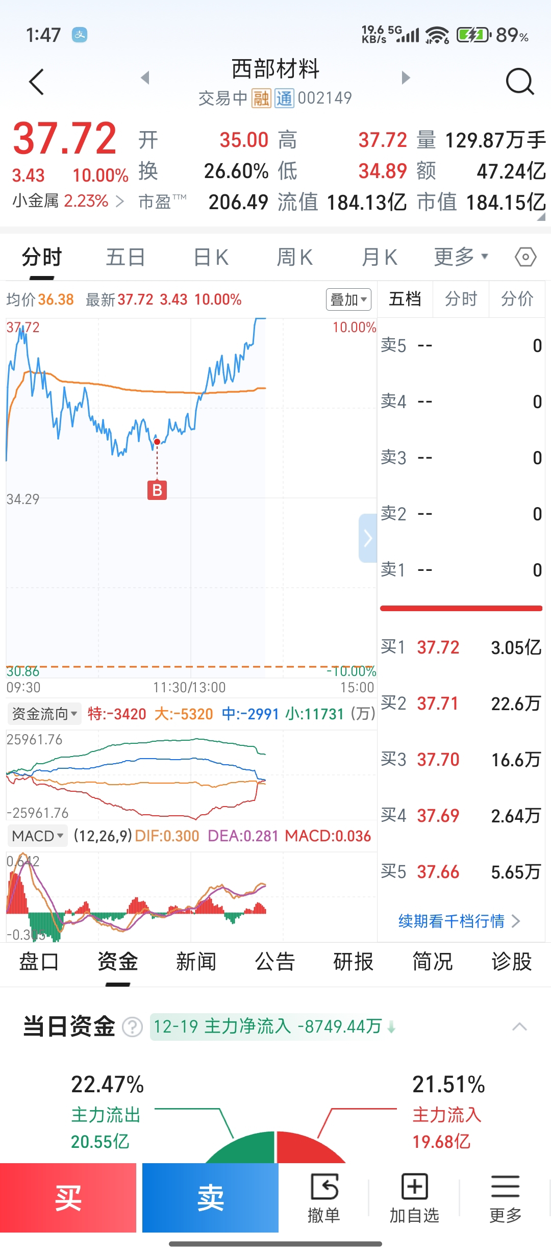 $西部材料(SZ002149)$ 今天低点继续加仓了