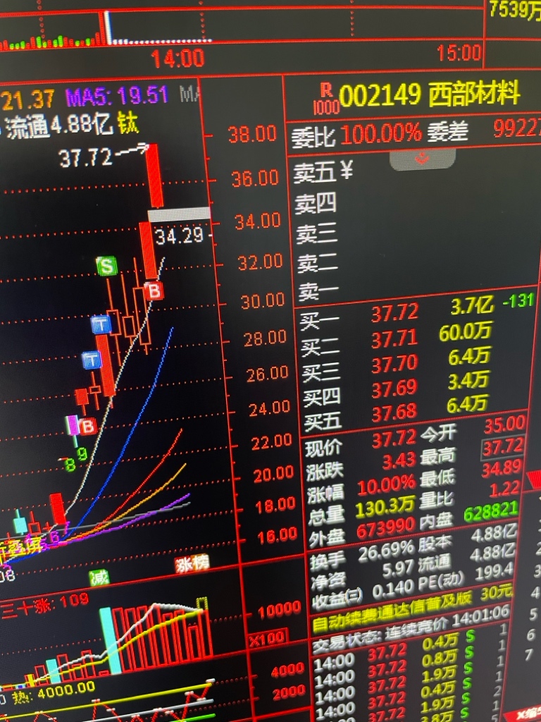 $西部材料(SZ002149)$ 多好的主升,卖在一致,周一再看吧。#炒股日记#